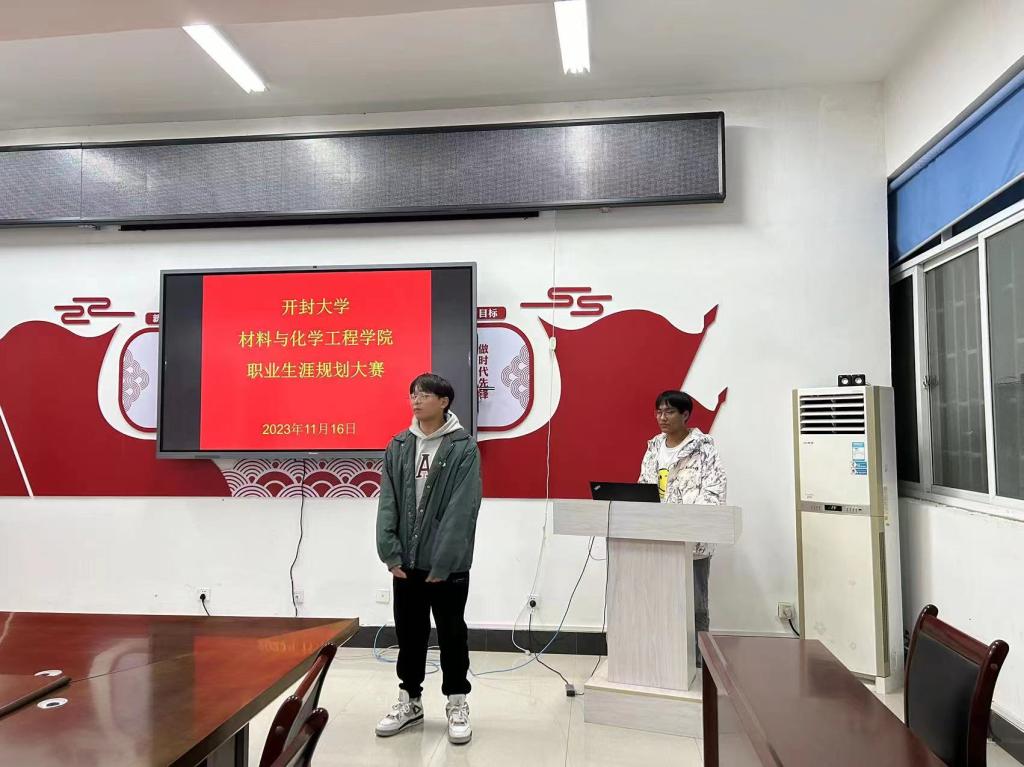 “塑造未来,点亮梦想”,为激发我院学生对未来职业规划的深度思考和实践,帮助他们更好的将学业与未来的职业发展相连接,开云kaiyun官网材料与化学工程学院于11月16日晚上七点半在7号化工楼201会议室举办了我院首届职业生涯规划大赛。副院长王丽、团总支书记杨磊以及学院辅导员老师出席本次比赛并担任评委。