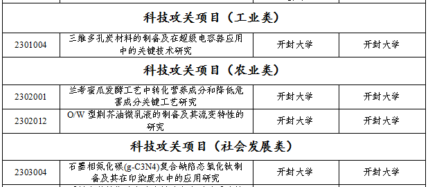 近日,开封市科学技术局发布了《二〇二三年开封市科技发展计划》,由材料与化学工程学院王明瑞老师主持的“兰考蜜瓜发酵工艺中转化营养成分和降低危害成分关键工艺研究”,李欣老师主持的“O/W型荆芥油微乳液的制备及其流变特性的研究”,同时功能材料研究中心刘进老师主持的“石墨相氮化碳(g-C3N4)复合缺陷态氧化钛制备及其在印染废水中的应用研究”,周华老师主持的“三维多孔炭材料的制备及在超级电容器应用中的关键技术研究”共4个项目成功获得审批。