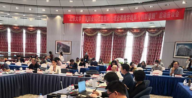 本站讯 9月27日至28日,校党委书记陈灿带领党委委员、校工会主席成芳和思政部主任常素芳参加了由北京大学马克思主义学院、北京大学习近平新时代中国特色社会主义思想研究院等组织发起的全国职业院校高校思政课教学改革与创新课题启动座谈会。