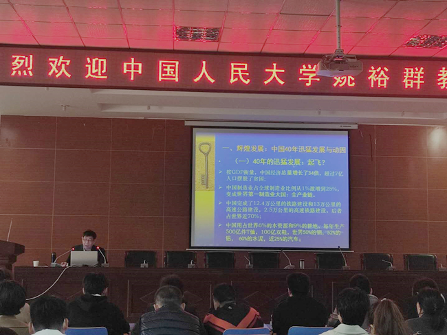 姚教授从“辉煌发展:中国40年迅猛发展与动因”“当前挑战:长期发展后遇到新问题”“学子就业:大机遇中找需求亮点”几个方面,向在场的师生展示中国蓬勃发展历程与学子就业的关系,鼓励同学们认清形势,敢于面对挑战,在机遇中寻求出路。并深入分析了当前就业形势,鼓励大学生夯实专业基础,丰富求职经验,实现充分就业;也号召同学们在新时代创业浪潮中,积极进取,开拓创新,敢于拼搏,实现精彩人生。同时,姚教授强调,大学生职业定位及人生发展路线是一个需要深入思考的问题,各高校需要加强力量做好这方面的工作。姚教授的讲座内容丰富,深入浅出,得到师生的一致好评。