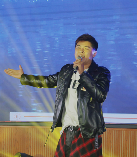 校党委副书记储建新、工会主席成芳和老师们同台歌曲联唱