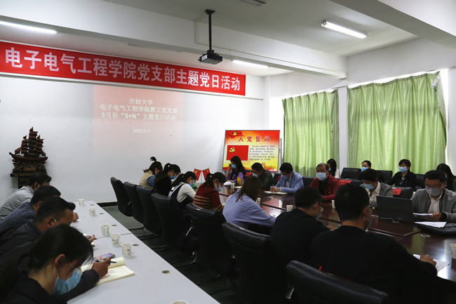 电子电气工程学院教工党支部严格按照“5+N”主题党日活动流程中重温入党誓词、诵读经典、过集体政治生日、交纳当月党费、通报评议四月份党员积分情况的要求开展活动,并组织了党建知识测试、观看党建知识视频等特色创新活动。在这次党日活动中,党委副书记储建新以支部一名普通党员的身份参加活动,并与另外两名党员同志围绕“攻坚克难、拼搏奋进,做合格劳动者”主题联系自身思想和工作实际进行了交流发言。