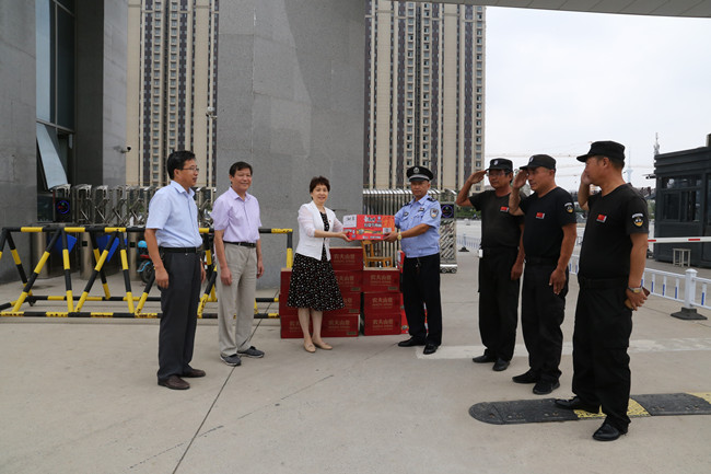 活动中,成主席一行依次来到学校南大门门岗、基建处、后勤管理服务中心、宣传部、教务处等部门对高温酷暑中辛勤工作、默默奉献的教职工表示感谢,并为他们送去慰问品,叮嘱他们在工作中一定要注意防暑降温,随时把安全放在首位,合理安排作业时间,劳逸结合,确保安全的情况下进行各项工作。