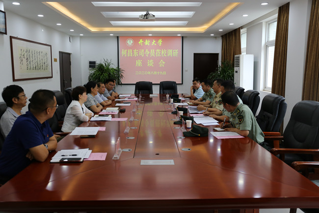 座谈会上,陈灿书记对何昌东司令员一行的到来表示热烈欢迎,对开封军分区、龙亭区人武部长期以来对学校武装工作的指导和支持表示感谢。她表示,学校党委、校行政一直高度重视大学生征兵工作,深入贯彻习近平强军思想和新时代军事战略方针,将国防教育纳入人才培养体系,切实提升大学生的国防意识和国防技能。陈书记指出,近年来,学校不断善征兵工作机制和措施,为部队输送了一大批优质兵源,切实服务了国防建设大局。