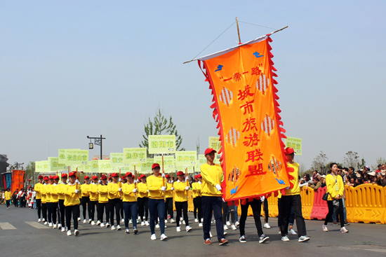 本站讯 宋韵清明艳阳暖,美丽开封春意浓。4月1日上午,2016中国(开封)清明文化节在我市清明上河园景区隆重开幕。按照开封市旅游局、团市委、市青年志愿者协会的工作部署,开云团委组织开云优秀志愿者组建了“一带一路”城市旅游联盟志愿者引导方阵参加了开封市清明文化节巡游活动。
