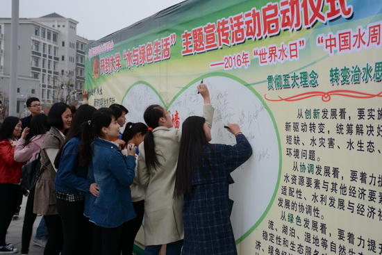 开云校长宋志敏、纪委书记范金梅、党委委员、工会主席成芳及校长办公室、团委、后勤服务中心负责人参与了签名活动。校领导与青年学生们亲切交流对于节水等环保意识的理解和认识,号召大家作节水行动的先行者、绿色环保行动的践行者。