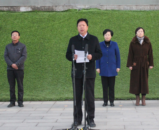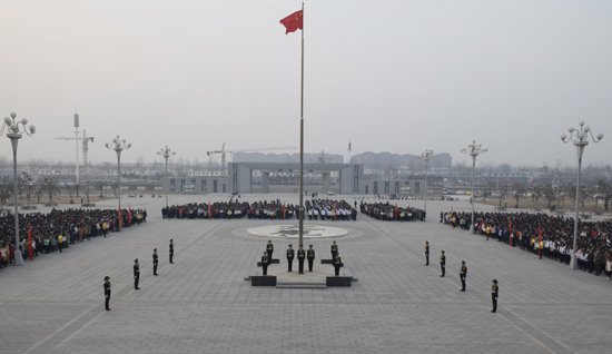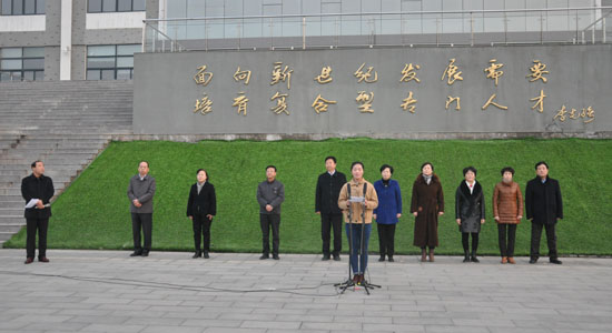 宋校长在仪式上讲话。宋校长代表学校党委、行政向全校师生致以新春和新学期的祝愿和问候。宋校长指出,新起点、新征程、新担当,全体师生在新学期必须点燃工作、学习的激情和干劲,坚定建设优质学校、提升办学层次的底气和自信。在校党委、行政的坚强领导下,同心协力、坚定信心、勇于担当、务实重干、刻苦学习、勤奋实践,为全面完成2016工作任务,为做一名信念坚定、为民服务、勤政务实、敢于担当、清正廉洁的好干部,为做一名有理想信念、有道德情操、有扎实学识、有仁爱之心、有创新意识、有服务能力的好老师,为做一名有理想、爱学习、懂礼仪、会劳动、精技艺的好学生而努力奋斗。