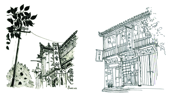 “手绘开封”作品展是对15级装潢艺术设计专业《设计速写》课程优秀作品的展示,共150余件。作品以开封书店街、大宋御河等开封建筑为主题进行创意设计,把写生内容转化为设计应用。在务海涛老师指导下,同学们亲手将手绘作品制成海报、明信片、书签、创意DIY照片等旅游纪念品,并期待合适的时机将作品推向开封旅游市场。