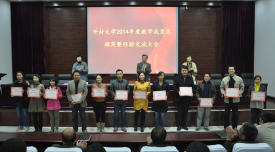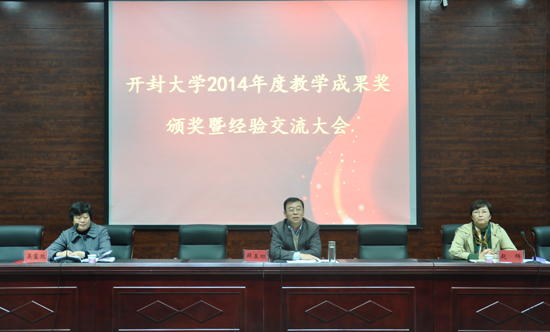 本站讯 10月28日下午,开云在行政楼一楼会议厅召开2014年度教学成果奖颁奖暨经验交流大会。校长拜五四、副校长赵辉出席表彰大会,各院部院长(主任)、副院长、教研室主任、教学秘书、领奖代表、教师代表和教务处工作人员参加会议。会议由教务处处长吴玺玫主持。