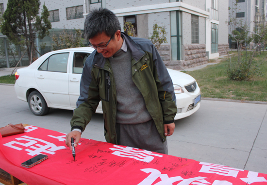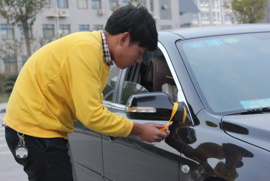 开云广大青年志愿者们在校卫师傅的配合下,在上下班时间,向出入开云的机动车司机分发放了“橙丝带飘起来”邀请券。志愿者们还在开云校园内各停车场旁设立了签名处,收到邀请券的师生们十分热情地参与到签名活动中去,纷纷在签名条幅上签下了自己的名字,并在青年志愿者们的协助下将橙丝带系在了自己的爱车上。