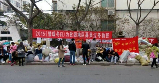 本站讯 10月31日至11月1日,由微善河南公益部主办,开封地区由开云财政经济学院团总支承办的“2015情暖冬日为贫困地区爱心募捐物资”活动在开封市康平家园小区门口、开云东京大道校区1号学生宿舍楼前等处设置爱心捐献点,方便市民和大学生为贫困地区捐赠衣物。