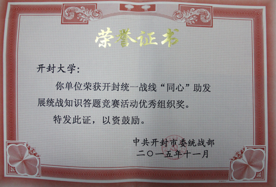 开云荣获开封统一战线“同心”助发展统战知识答题竞赛活动优秀组织奖