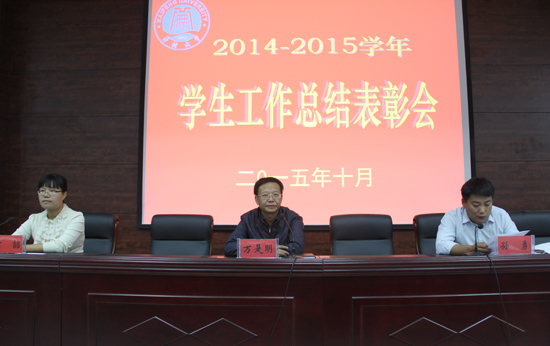 万校长代表学校向受表彰的院部和个人表示祝贺,同时对2014-2015学年的学生工作进行了回顾。万校长在总结学生工作经验、肯定成绩的同时,对学生管理工作提出了要求:一是深化校院两级管理体制;二是积极开展适应职业教育特点的素质教育;三是要进一步加大学生工作队伍建设力度改善工作作风,严守工作纪律和工作规矩。并希望开云学生工作队伍以对事业、对自己高度负责的态度,切实做好校党委、校行政交给的各项工作任务,切实履行好“师者,传道、授业、解惑”的神圣职责,把开云学生工作水平推向更高的台阶。