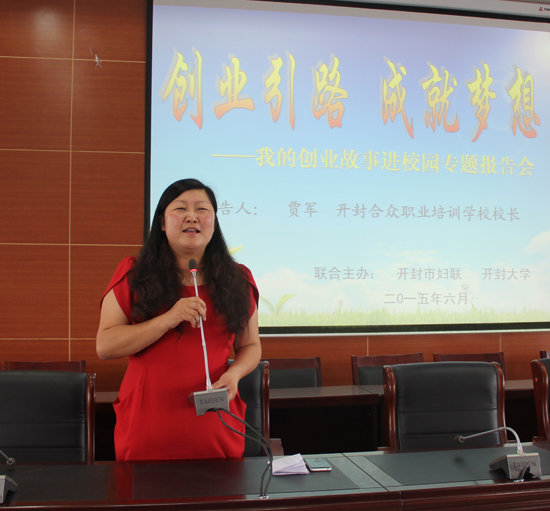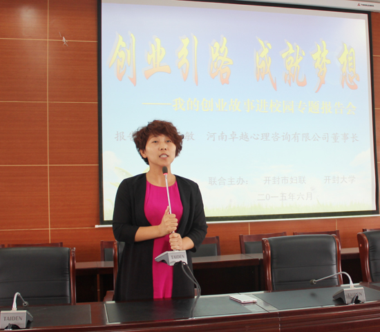 本站讯 为响应国家“大众创业、万众创新”的号召,转变大学生就业观念,加强大学生创业教育,6月4日下午,由开封市妇联和开云kaiyun官网联合举办的“创业引路 成就梦想”我的创业故事进校园专题报告会在开云土木六楼报告厅举行。开封市妇联主席薛冬、开封市妇联副主席杜静晶、开封市妇联纪检组长李培芳,开云纪委书记范金梅、工会主席成芳及400余名师生参加了报告会。报告会由校党委宣传部部长樊玉霞主持。