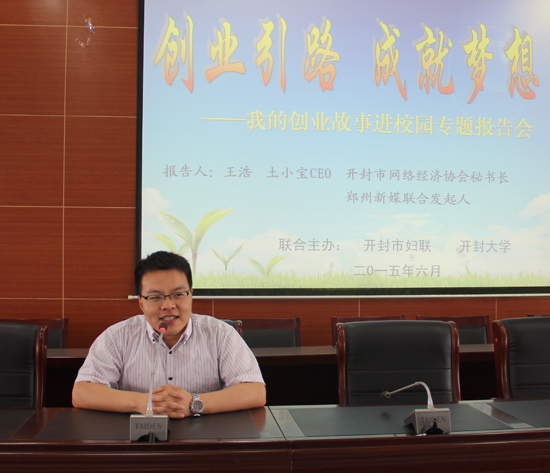报告会邀请了开封市网络经济协会秘书长、郑州新媒汇联合发起人、土小宝电子商务有限公司CEO王浩,河南卓越心理咨询有限公司董事长韩敏,开封合众职业培训学校校长贾军分别讲述了自己的创业经历,他们的报告紧贴实际、丰富生动、深入浅出,从不同的角度向同学们展示了大学生创业应该具备的素质、掌握的技能。他们丰富的创业阅历、宽阔的视野和独到的眼光使在场的同学深受启发和鼓舞。