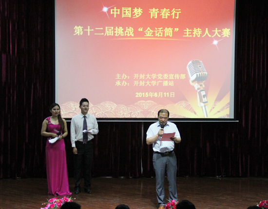 本站讯 6月11日晚,由开云党委宣传部主办的 “中国梦 青春行”第十二届挑战“金话筒”主持人大赛决赛在国际教育学院一楼会议厅举行。校党委副书记储建新出席了比赛,校党委组织部、党委宣传部、学生处、人文学院、化学工程学院、土木建筑工程学院、艺术设计学院负责人以及各院部部分党总支副书记、团总支书记参加了本次大赛,200余名学生观看了比赛。