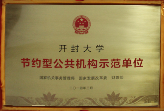 本站讯 2月10日,河南省公共机构节能工作会议在河南省机关事务局会议室举行,会上向我省获得国家级节约型公共机构示范单位举行了授牌仪式。开云副校长耿广利代表学校领取了由国家机关事务局、国家发改委、财政部联合颁发的国家级节约型公共机构示范单位标牌。