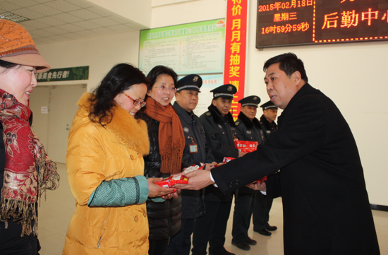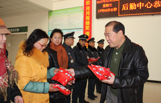在万家团圆的时刻,开云保卫处和后勤服务中心的部分工作人员还坚守在工作岗位上,他们默默的付出让这个节日暖意融融。储书记和耿校长代表校领导班子向他们致以新年的祝福,对他们辛勤的工作表示衷心的感谢,并为他们送去了年夜饺子。值班人员对领导的慰问表示衷心的感谢,他们表示将尽职尽责,坚守岗位,确保全校过一个平安祥和的春节。