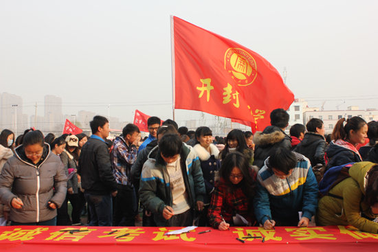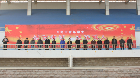 仪式上,开封市学生联合会向广大青年学子发出如下倡议:知荣明耻,诚信做人;端正态度,平和心态;科学复习,积极备考;文明考风,严守考纪。现场的2000青年学子庄严宣誓:严格遵守考试纪律,公平参与考试竞争,自觉维护考试环境,珍惜名誉,砥砺品质,杜绝舞弊,服从管理,诚信考试,诚实做人,以良好的心态,出色的发挥,优秀的品格,考出真实成绩,共建诚信社会。宣誓结束后大家还在“诚信考试•诚实做人”条幅签字了自己的名字。通过参加此次活动,对于进一步引导开云青年学子把知识学习和品德修养结合起来,把知识学习和社会实践结合起来,把全面发展和个性发展结合起来,实现全面发展,成为栋梁之材起到了积极的促进作用。