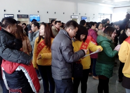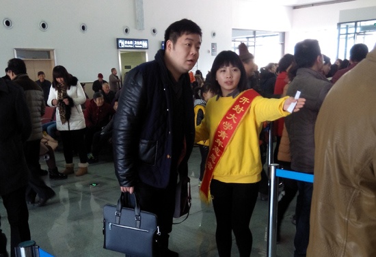 本站讯 2015年1月1日,在校团委的号召和统一部署下,旅游学院团总支组织21名青年志愿者赴郑开城铁宋城路站开展为期3天的志愿服务活动,为乘坐郑开城铁的旅客提供引导、咨询,协助老弱病残孕旅客候车、送站等志愿服务,校团委副书记田俊松、旅游学院团总支书记杨强带队参加了此次活动。