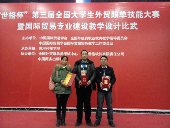 国际教育学院院长李治获得第三届国际贸易专业建设教学设计比武大赛“说专业建设”三等奖;国际教育学院国际贸易教研室主任孙超获得第三届国际贸易专业建设教学设计比武大赛“说核心课程”三等奖。