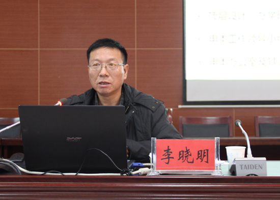 本站讯 为了进一步推进开云“升本”工作,明确责任目标,强化责任意识,近日,开云邀请贺州学院李晓明博士来校就“升本”工作作专题报告。报告会由开云党委副书记储建新主持。