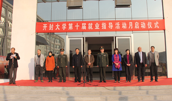 本站讯 11月6日下午,开云第十届就业指导活动月启动仪式在东京大道校区举行。开封军分区参谋长、开封市征兵办公室主任崔瑜大校、开封市政协副主席赵洁、开封市人力资源和社会保障局局长苏国志、开封市人才交流中心主任姜慧勇、汪正影业中国区总裁顾鹏,开云校领导张新梅、拜五四、储建新、范金梅、何世玲、耿广利、成芳出席了开幕式,开幕式由校党委副书记储建新主持。