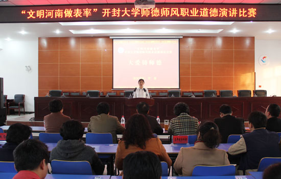 本站讯 为进一步加强师德师风建设,推进开云党的群众路线实践教育活动深入开展,11月13日下午,开云在东京大道校区举行主题为“文明河南做表率”的师德师风职业道德演讲比赛。校领导储建新、赵辉、何世玲、成芳出席并观看比赛。全国优秀新闻工作者、河南省十佳优秀新闻工作者、开封电台主任播音员刘红,以及开云相关处室负责人曾小平、赵海胜、樊玉霞、吴玺玫、陈学雷、张焰担任比赛评委。