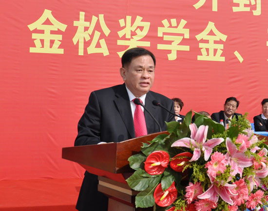 董事长李金松先生发表了热情洋溢的讲话。他首先代表开云kaiyun官网校董事会、代表金心集团向获得本次“金松奖学金”的同学表示最热烈的祝贺,向关心和支持学校发展的巿委、巿政府、社会各界人士表示最衷心的感谢,向开大教职员工致以最崇高的敬意,向奋发向上,不断进取勇攀高峰的同学们致以最亲切的问候。李金松先生说,自“金松奖学金奖”创立21年来,学校发生了翻天覆地的变化。近4000余名“金松奖学金”获得者走向社会之后在不同的领域充分发挥聪明才智,取得了可喜的成绩,更有不少同学以感恩之心反哺学校,全心全意支持和参与学校的建设和发展,尤其是今年搬进了千亩新校舍,学校又喜获全国就业50强的光荣称号,开云kaiyun官网以惊人的速度向前发展,其成就之巨大令人鼓舞!作为开大的董事长,在这21年之中,亲眼目睹开大每一步的发展,内心的喜悦和欣慰更是难以形容。今天,举行这样隆重的仪式,目的就是让同学们感受到国家、社会、学校对同学们成长的关怀,由此激发同学们奋发向上、努力学习、报效祖国的精神,树立为民族复兴而奋斗的远大理想。奖学金既是物质的奖励,更是精神的激励,希望青年学子要“志当存高远”,戒骄戒躁,永不停步。