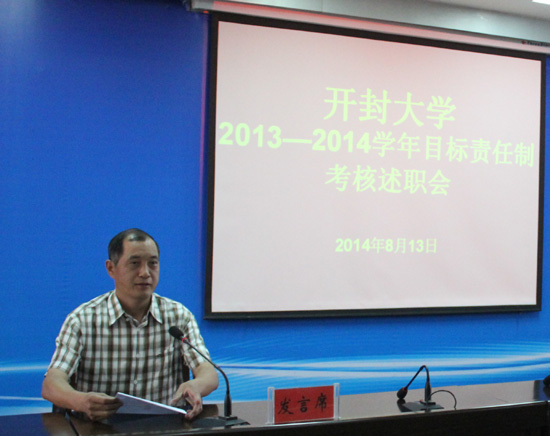 各院部和公共教研室等18个单位分别围绕教学工作、师资队伍建设、实验实训、科研、招生工作、就业工作、党建、党风廉政建设、精神文明建设、宣传报道、学生管理、社会服务、数字化建设、安全稳定、档案及信息等方面对本单位2013-2014学年目标责任完成情况进行述职,参会人员现场打分,对述职单位目标责任完成情况进行评价。
