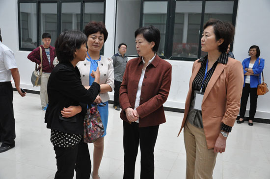 校党委书记张新梅(右二)与学生家长亲切交谈