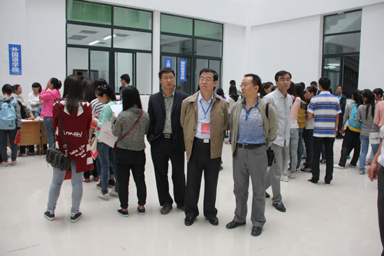 校领导高度重视新生报到工作,一大早,校领导张新梅、拜五四、储建新、万是明、赵辉、范金梅、何世玲、耿广利、成芳等先后到迎新校区现场进行巡视查看。党委书记张新梅首先来到图书馆报到处,询问学生报到工作进展情况,与新生家长亲切交谈,了解新生家庭具体情况。在绿色通道大厅,张书记询问学生家长有什么困难,是否需要帮助,并鼓励学生努力学习。在报到现场,校长拜五四对报到各个环节提出了具体要求,要求新生接待工作人员要周密安排,确保新生报到工作顺利进行。