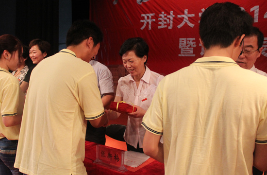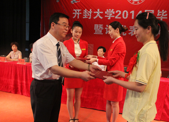 校长拜五四为2014届毕业生代表颁发毕业证书