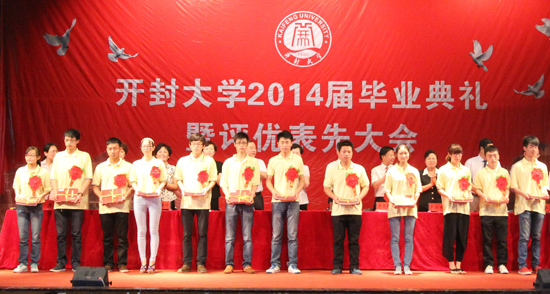 毕业典礼在庄严的国歌和奋进的校歌声中拉开帷幕,党委副书记储建新宣读2014届毕业生评优评审结果,127名省级优秀毕业生、666名校级优秀毕业生、63名三好学生标兵、637名三好学生和202名优秀学生干部受到表彰;副校长万是明宣读2014届毕业生资格审查结果,4140名毕业生符合毕业条件,顺利毕业。伴着欢快的乐曲,校领导为获奖的毕业生代表颁奖。