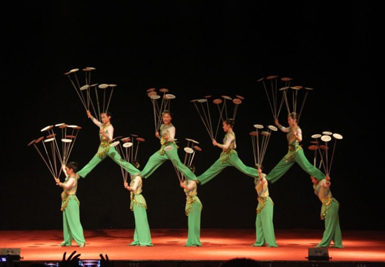 表演中,演员们个个身怀绝,转碟表演时,演员们用各自双手举着三根长约一米,粗如铅笔的竿子,每个杆子均顶着一个碟子,晃动旋转,看上去似迎风而立的荷叶,又若飞舞的彩蝶,优美而抒情,她们健美的身材以及协调的舞步融入在欢快的音乐中。紧接着,滑轮表演开始,两位演员在一个圆桌上进行表演,场面之惊险,速度之快而又不失美感,让人叹为观止。表演层出不穷,将晚会的气氛一次又一次推向高潮,台下掌声欢呼响成一片。