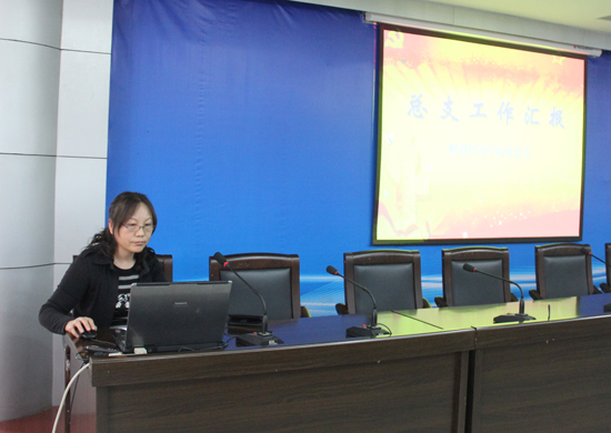 汇报会上,16个党总支书记、直属党支部书记按顺序对本部门基层党组织2013-2014学年工作在自身建设、教育管理、思想宣传、群团统战、创先争优、特色创新等方面进行了PPT展示和汇报,校党委各职能部门及参会总支书记对每个单位的总结汇报进行了评比打分。