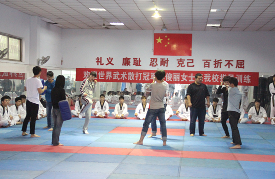 散打冠军李俊丽为开云跆拳道协会会员做现场指导