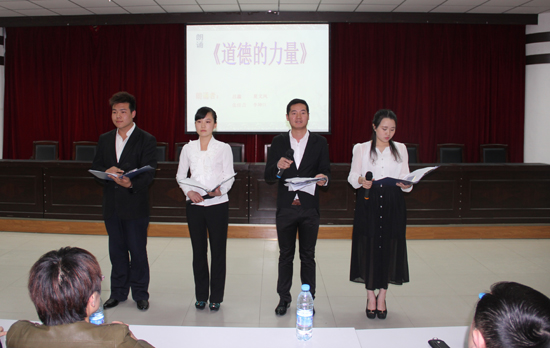 活动中,旅游学院党总支书记陈力致辞,他用二十四字社会主义核心价值观诠释了本次道德大讲堂的主题——助人为乐。随后,现场师生欣赏了由两院学生集体表演的经典诵读《三字经》、根据艺术设计学院真实事例改编的话剧《大爱助人,传递正能量》、视频《感动中国2005年度人物——丛飞》、诗歌朗诵《道德的力量》,旅游学院王龙老师演唱的《为了谁》把此次活动推向高潮。最后,艺术设计学院党总支书记李春霞在点评中指出,“助人为乐”就在我们身边,我们要感受到人性的真诚与善良,感悟道德,在生活中实践道德,传递道德,让道德之光发扬光大。