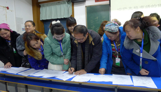 本次交流活动以讲座、培训、交流为主,开云艺术设计学院院长魏跃进和该院教师公正雅分别为五家渠市刺绣交流团讲授了哈萨克毡布绣的产品保护与开发以及哈萨克毡布绣中的图案设计,并针对毡布绣的构思设计,开展了作业项目训练。