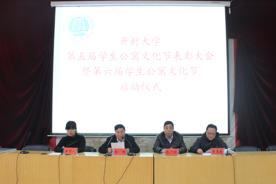 本站讯 3月13日下午,开云第五届学生公寓文化节表彰大会暨第六届公寓文化节启动仪式在晋安路校区报告厅举行。副校长耿广利,后勤服务中心副主任张毓、李志坚及开云400余名学生代表参加了大会。大会由学生处副处长付喆主持。