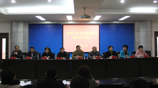 随后,拜校长根据中央、省、市纪委的部署和要求,进行题为《筑牢思想防线,增强拒腐防变意识》的春节前集体廉政谈话。他在谈话中按照党的十八大以来,党中央先后出台的一系列文件和规定的要求,向党员领导干部提出三点意见,要求全体党员干部同志要做到:一要认清形势,绷紧廉洁自律的弦;二要保持清醒头脑,清廉过节;三要以身作则,做好表率。