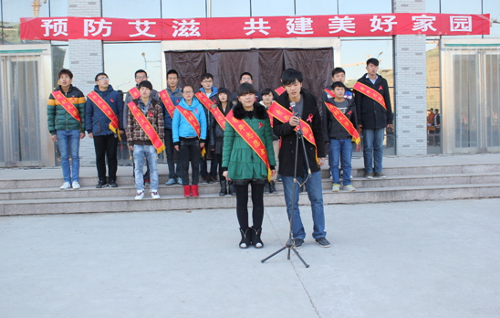 师生在“预防艾滋,共建美好校园”横幅上签字,制作了“艾心”宣传展板。