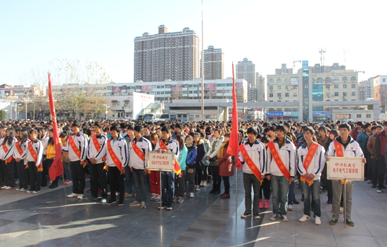 学生代表艺术设计学院2012级学生徐文静向全体师生发出交通安全倡议。