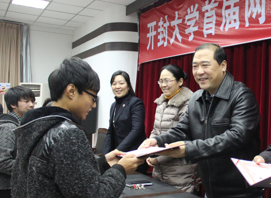 与会领导为首届网络文化节各项比赛获奖同学颁奖