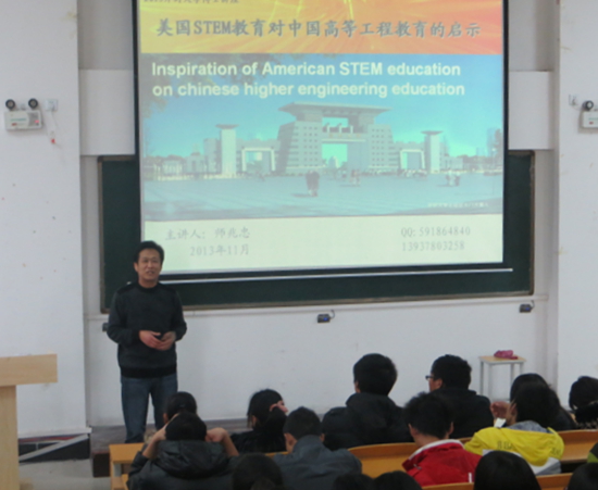 本站讯 11月21日下午,化工学院院长师兆忠博士在东京大道校区17号楼408教室为近200名师生作题为《美国STEM教育对中国高等工程教育的启示》的讲座,此次讲座是开云kaiyun官网博士系列讲座之一。