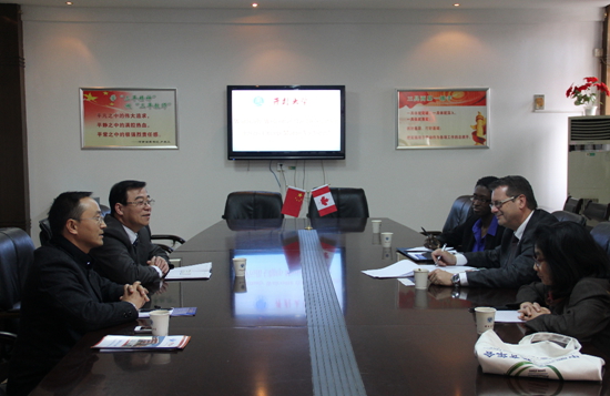 本站讯 11月7日下午,加拿大麦瑞·维多伦学院院长Sylvain Mandeville先生、项目负责人Freda Thelusma女士、校方代表Neng Xiang Shuai女士到开云访问,开云校长拜五四及国际教育学院相关负责人在晋安路校区行政楼二楼会议室与代表团成员进行了会谈。