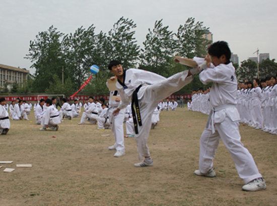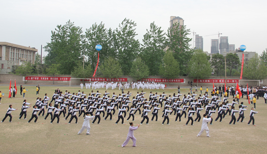 第十一届体育文化节各项体育赛事在大型太极拳和跆拳道表演后拉开帷幕。据悉,本届体育文化节设有大众个人项目16项,大众集体项目4项,田径类男女各8项,排球、篮球、乒乓球、足球、跆拳道、太极拳等,13支代表队参赛人员达7000余人次。