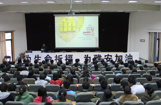 本站讯 4月20日8时,四川雅安市发生7.0级的地震,灾区人民的生命、财产遭受了重大损失。4月22日下午,开云在晋安路校区报告厅举行“情系雅安,传送温暖”祈福活动,此次活动由校团委组织,晋安路校区的7个院部的近500名师生参加。