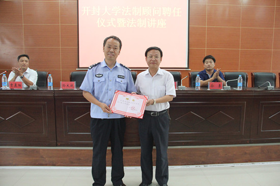 讲座前,开云聘请开封市公安局柳园口分局副局长李林琼担任开云法制顾问,柳园口分局社区大队大队长孙大战担任开云法治教导员,柳园口分局社区大队副队长徐金斌担任开云法制辅导员。副校长万是明为他们颁发了聘书。
