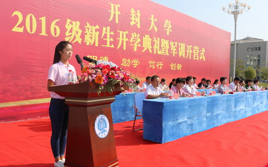 校长宋志敏讲话。他代表开云kaiyun官网万余名师生员工向5020名新同学表示衷心的祝贺和热烈的欢迎!向承担本次军训任务的教官表示衷心的感谢!宋校长向新同学简要介绍了开封的历史文化,回顾了开云36年来走过的闪光历程、取得的光辉成就以及开云目前的发展现状。宋校长指出,大学是激扬青春、矢志追梦的地方,是完善自我、理想起航的地方。他送给新同学们两个关键词“创新”和“勤奋”,希望他们培养自己的创新意识、做一个勤奋的人!他强调,创新意识是一种现代意识,是当代大学生应该具备的基本素养与内在品质,也是走向社会能够更好成长的客观需求。他要求同学们从五个方面培养创新意识:一是锻炼自己独立思考的能力,养成敢于质疑权威的健康批判精神,树立敢于尝试、不怕失败的闯劲儿,具有带着问题去学习的钻劲儿,有着经常进行自我激励的阳光心态;二是把至善至好的追求当作理想目标,弘扬光明品行,刻苦学习,掌握系统的知识结构,学以致用,提高自身素质和创新能力;三是要把兴趣、热爱、好奇心作为成就创新人才的要素,在大学的学习中不知疲倦、以苦为乐,让创新的光芒肆意地迸发和挥洒;四是要付出艰辛,自觉、主动的探索,积极投身于社团活动、技能竞赛和社会实践活动,谦虚好学、善于沟通;五是要有对创新的执着追求。他还要求同学们做一个勤奋的人,为自己的大学生活树立一个可行的目标,要将个人的发展同祖国的命运、民族的未来紧紧相连,敢于直面挑战、认清使命,最终成为社会需要的人才;做一个勤奋的人,自觉把勤奋作为一种追求、一种习惯、一种享受、一种快乐,以积极的心态、坚定的信心,保持一颗平常心,从小事做起,在细节上起步,潜心学习、注重实践,将专业学习与第二课堂相结合,将工匠精神与人文情怀相结合,学有所得、学有所为,为自己人生的精彩积蓄力量;做一个勤奋的人,投身于社会实践和群体活动中去,在实践活动中学会思考,学会合作,学会创新的本领,在实验实训中学会动手、学会劳动,在团队合作中让自己成为正能量的发光体。